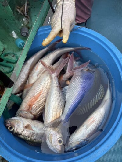 イヤゴハタ五目で釣れました!ウメイロ頭10匹程度他メイチ ルアーカンパチ一本リリース 他スマガツオ キメジでした