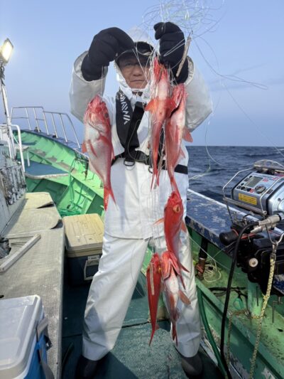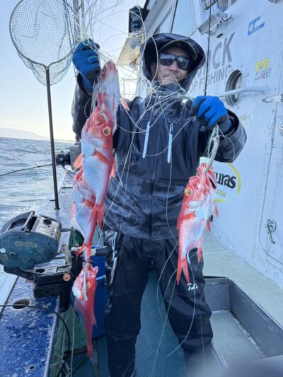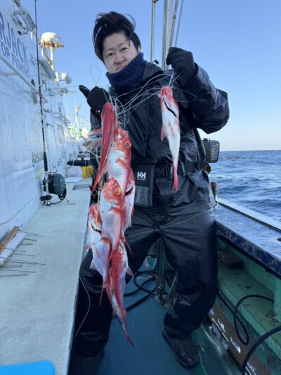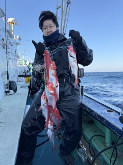 キンメ船の方は多点掛けできた流し多く数伸びました!2人初挑戦の方も数釣れてお土産十分になり喜んでくれました😁